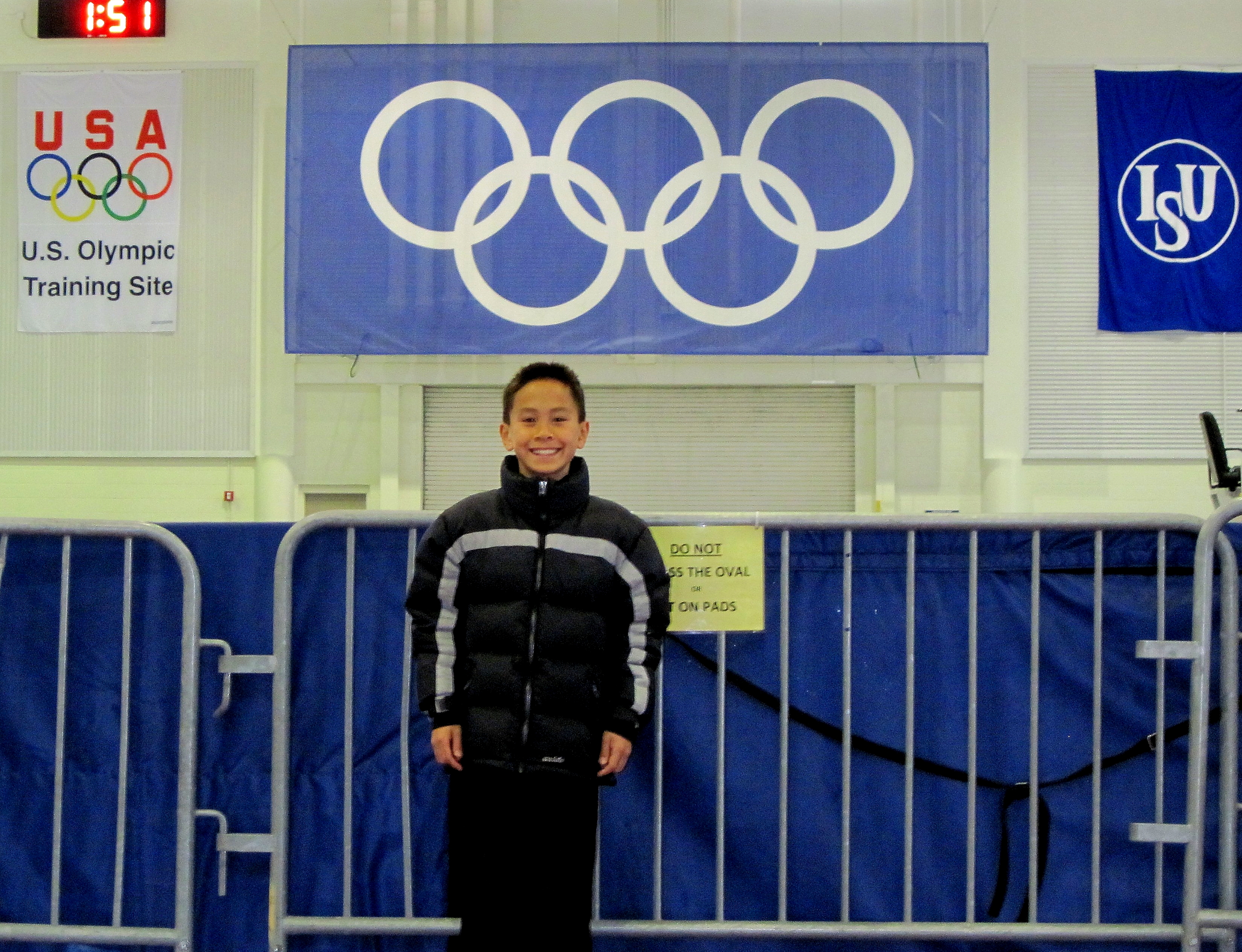 on our ways. That evening, Dinh was put on practice ice for Junior, Senior and Juvenile Boys. There was one lady on a session of otherwise all high level male skaters! How often does that happen for a Juvenile Boy! It just so happened that on that session, Dinh was again skating with Jonathan Cassar, Andrew Gonzales and Keegan Messing! At one point, Dinh came back to the wall to receive instruction from me, and with his sparkling eyes wide as saucers, he said to me…”Wow, this is so cool!” There was the slightest flutter of his eyes as though he was recording a mental picture of what he was feeling in that moment. Five words have never been spoken so clearly or heard so loudly! He was having the time of his life! It was both thrilling and beautiful to watch, and I felt privileged to have witnessed the amazing transformation of a young boy finding his voice and confidence and becoming one of the sport’s new young men! During the session, as Dinh got warmed up, he started peeling off layers until getting down to the tank top in which he loves to skate. Jonathan, who was standing next to him, flashed him a brilliant smile and said “Whoa, little man! You’re ripped! Who’s your trainer?” Dinh’s smile grew until it was nearly ear to ear and then he bolted off to bang out a perfectly clean triple toe! Jonathan watched and applauded his effort. After the session, Keegan Messing came up to me with his coach, Ralph Burghart. They were all smiles as they asked “Was that your little guy out there?” As Dinh sat there quietly taking off his skates, I said “Yes, this is Dinh Tran.” Keegan said “He’s such a little dude on the ice. He totally held his own out there.” I told them about Dinh’s comment about this being so cool and they thought that was great! Both wonderful guys and very supportive of Dinh’s enthusiasm! The next morning was Dinh’s official warm up and the competition! Even after a couple of uncharacteristic spills, he ended up 3rd and advanced to Nationals! Keegan was at the rink watching the event and made a special point to take some time to come up to Dinh and tell him, “Dude, you did a great job out there today!” As we left to fly home, we ended up on the same flight to San Francisco as Camden, one of Dinh’s competitors who won the Juvenile Boys event. The two became instant friends! We happened to all be sitting in the same two rows, and after juggling a couple of seats, the boys sat together and played video games the entire flight to SFO. In this age, of course they were using an I Touch! First they played Kung Fu Soccer and then proceeded to build an Ice Skating Arena in Mine Craft! (I have no idea what that is, but that’s what Dinh told me!) Since they never finished the arena before the flight landed, Camden offered to finish it before Nationals. After promising to see each other soon in Omaha, they said goodbye and Camden continued as his way home to Arizona. So…other than just a recollection of one boy’s journey,